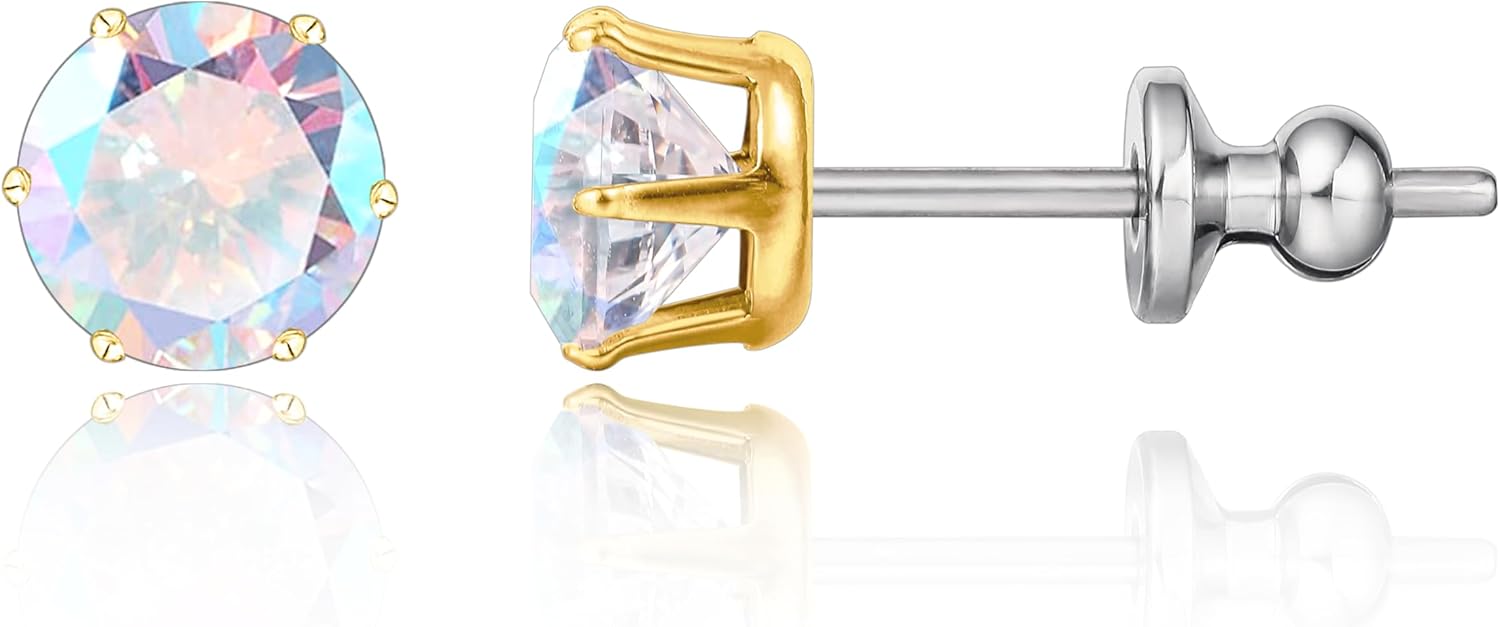 limerencia Titanium Earrings Hypoallergenic F136 Implant Grade Studs Round Cubic Zirconia 6 Prong Stud Earring for Women Men Sensitive Ears
