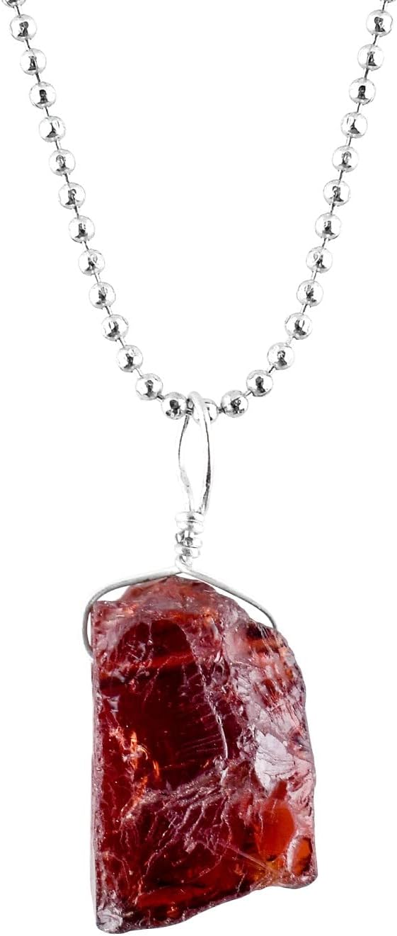 Natural Raw Garnet Gemstones Pendant Necklace, Rough Stones, Chakra Healing Crystals, Silver Plated, January Birthstone, Handmade, Fashion, Women Jewelry, Valentine Gift, Size 18"