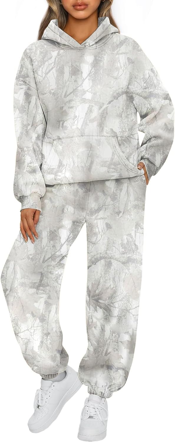 2 Piece Camo Sweatsuits for Women Oversized Maple Leaf Hoodies Sets Graphic Sweatshirts Tracksuits Fleece Fall Outfits