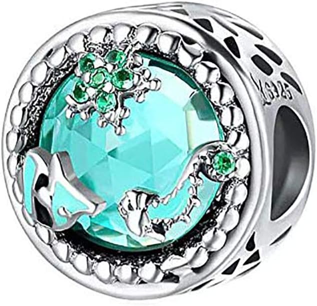 Blue Mermaid Tail & Shell pearl Charm 925 Sterling Silver Ocean Charm Beads for Bracelet & Necklace