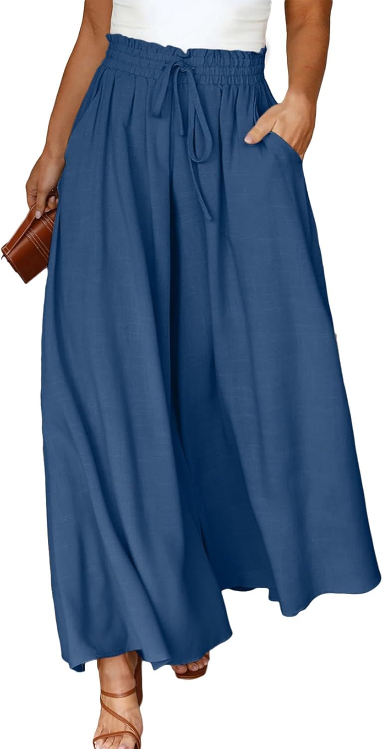 Eytino Womens Plus Size Wide Leg Pants Casual Elastic High Waist Flowy Pants Drawstring Palazzo Pants with Pockets(1X-5X)