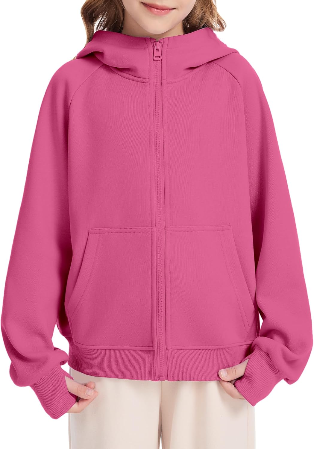Girls Zip Up Hoodies Teen Fleece Full-Zip Sweatshirts Jacket Casual Hoodie with Pocket 5-14Y