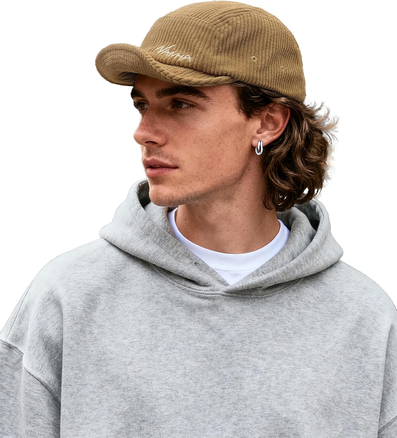 Clakllie Corduroy 5 Panel Hat Short Brim Baseball Cap Urban Street Flat Bill Hats Cooling Trucker Hats Snapback Fitted Cap