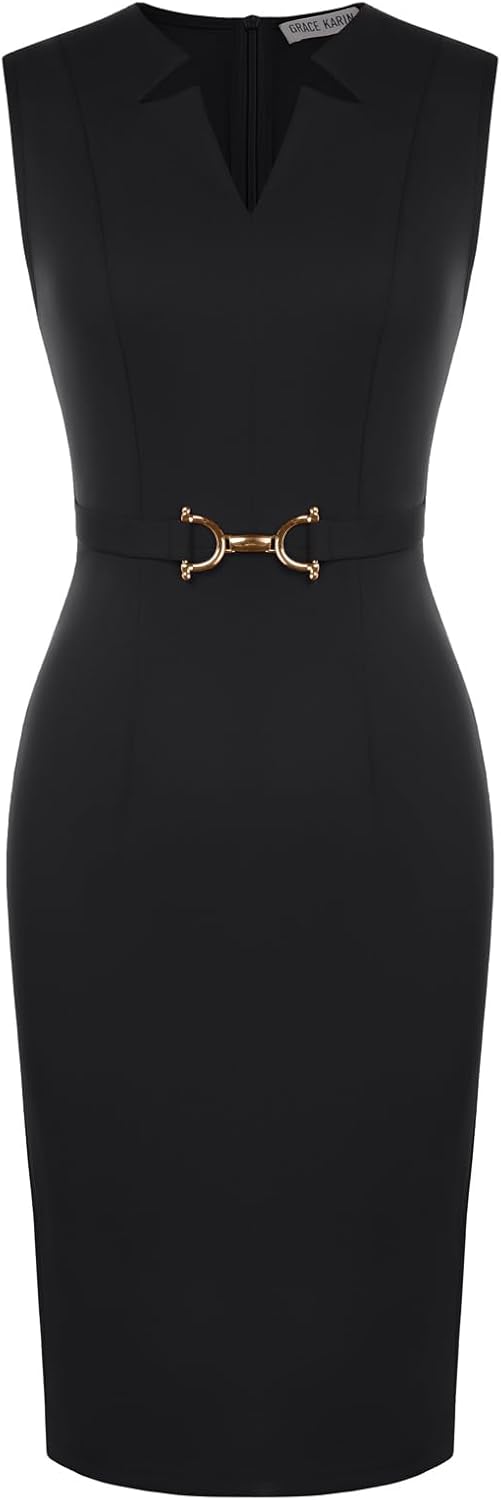 GRACE KARIN Work Dresses for Women 2026,V Neck Business Office Bodyon Dress,Sleeveless Pencil Semi Formal Midi Dress