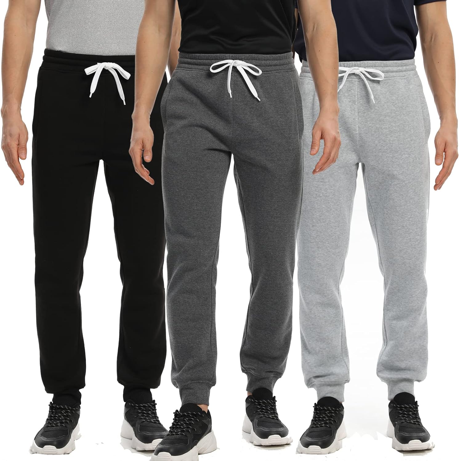 Mens Joggers Sweatpants,3 Pack Fleece Sweat Pants with Pockets/Zipper Pockets Athletic Workout Gym Joggers for Men