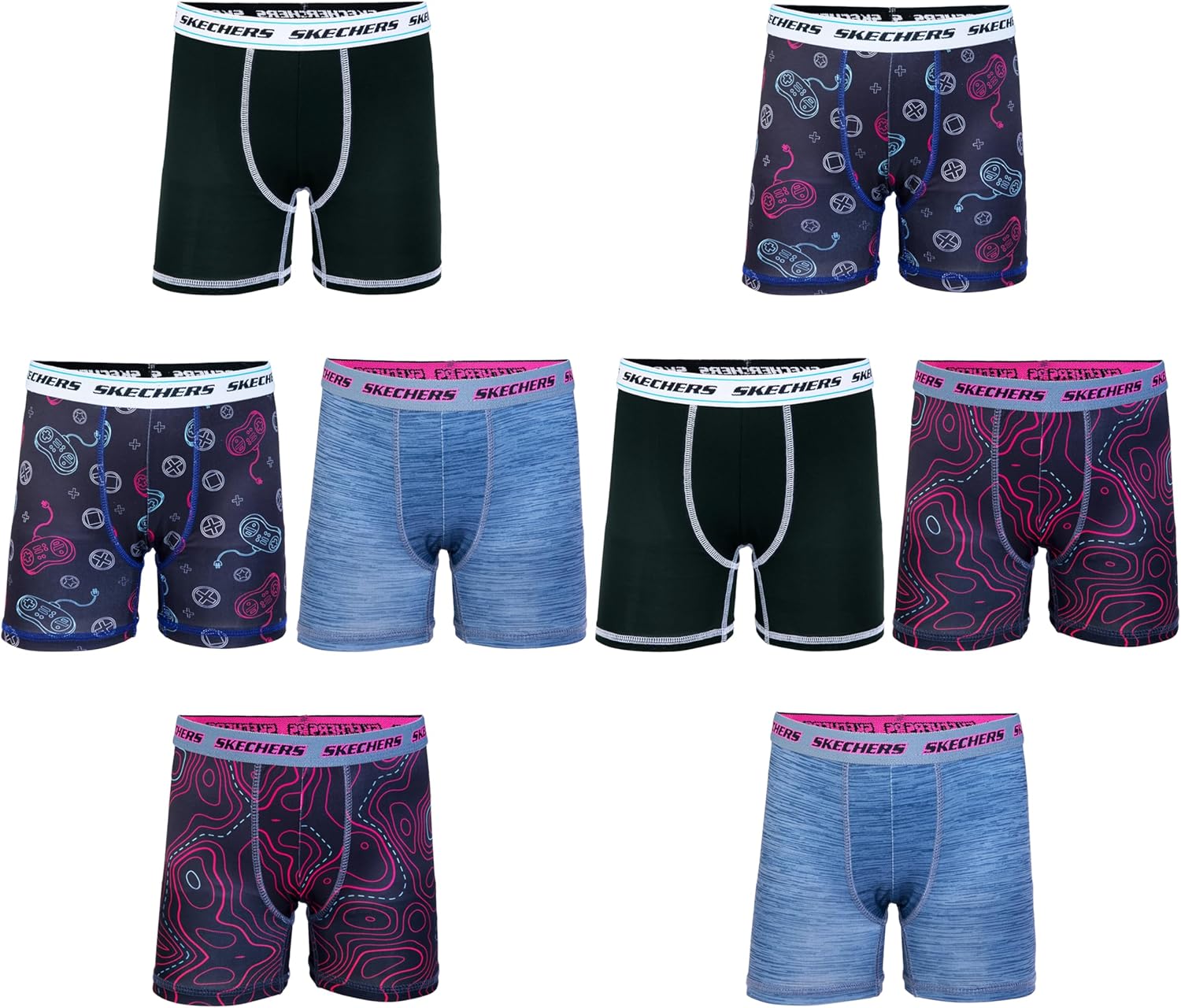 Skechers boys Amazon Exclusive 8pk Athletic Boxer Briefs With Unique Prints in Sizes 2/3t, 4, 6, 8 and 10