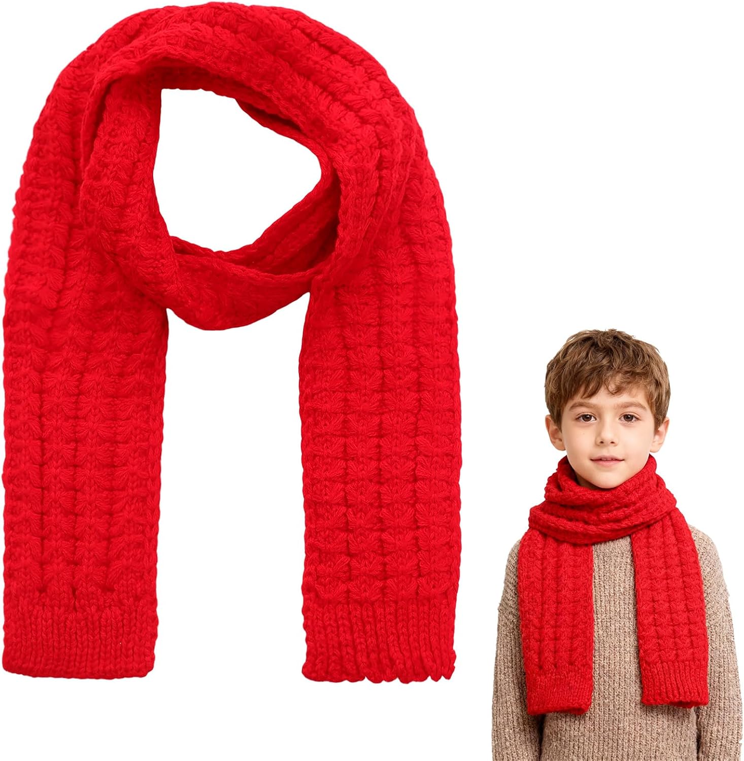 Kids Soft Knitted Scarf Winter Fashion Solid Color Toddler Neck Warmer Scarf Warm Scarves Wrap for Girls Boys