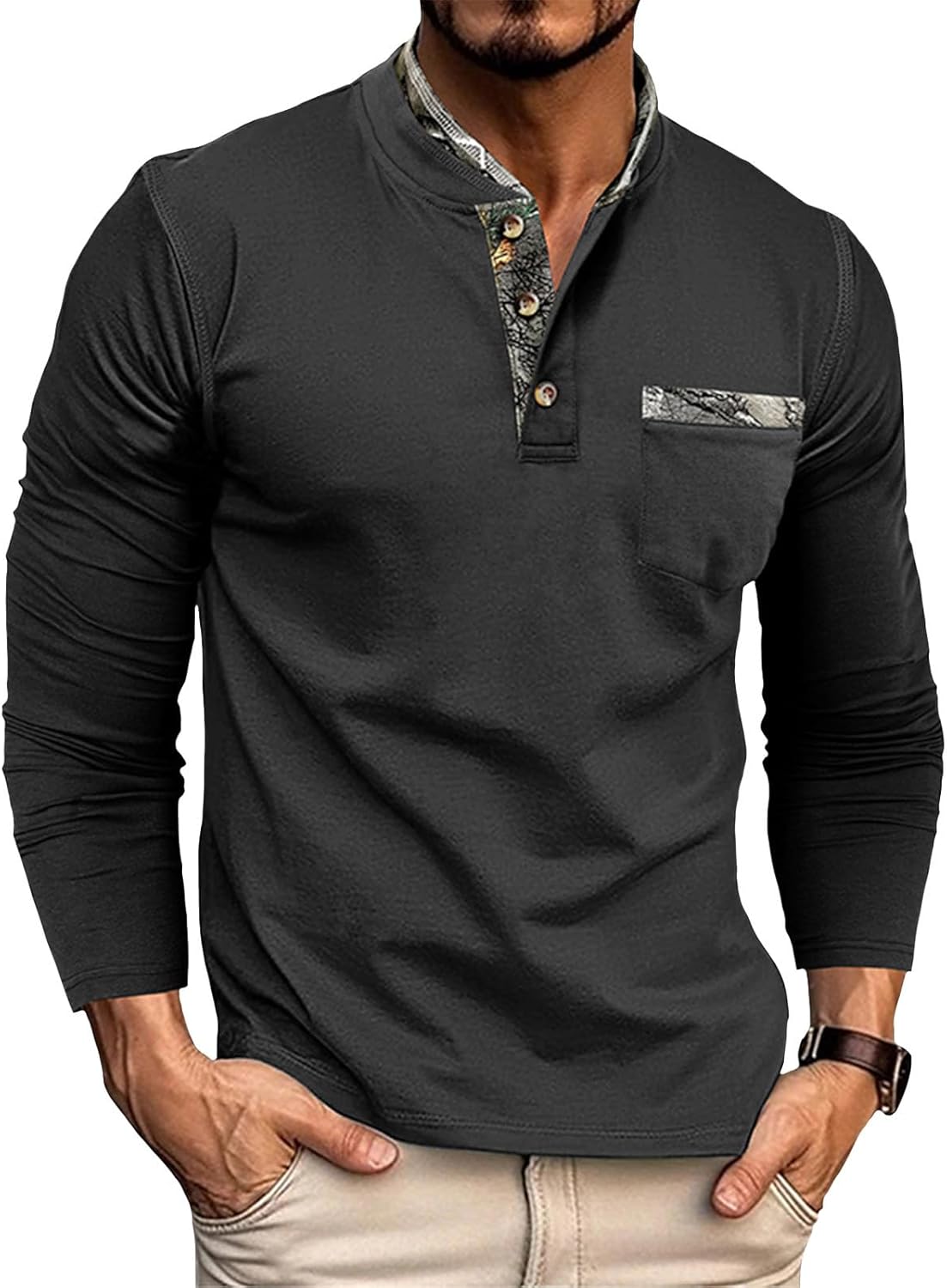 Mens Henley Shirts Vintage Long Sleeve Summer Casual Cotton Button Down T Shirts with Pocket