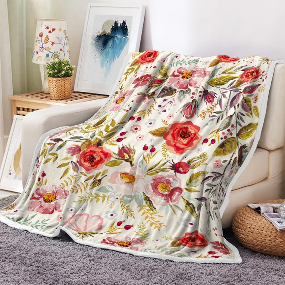 Floral Throw Blanket Vintage Floral Fleece Blanket | Soft, Flannel, Warm, Boho Botanical Flower Fleece Throw Blanket, for Couch Bedroom Living Room 50X60 Inch