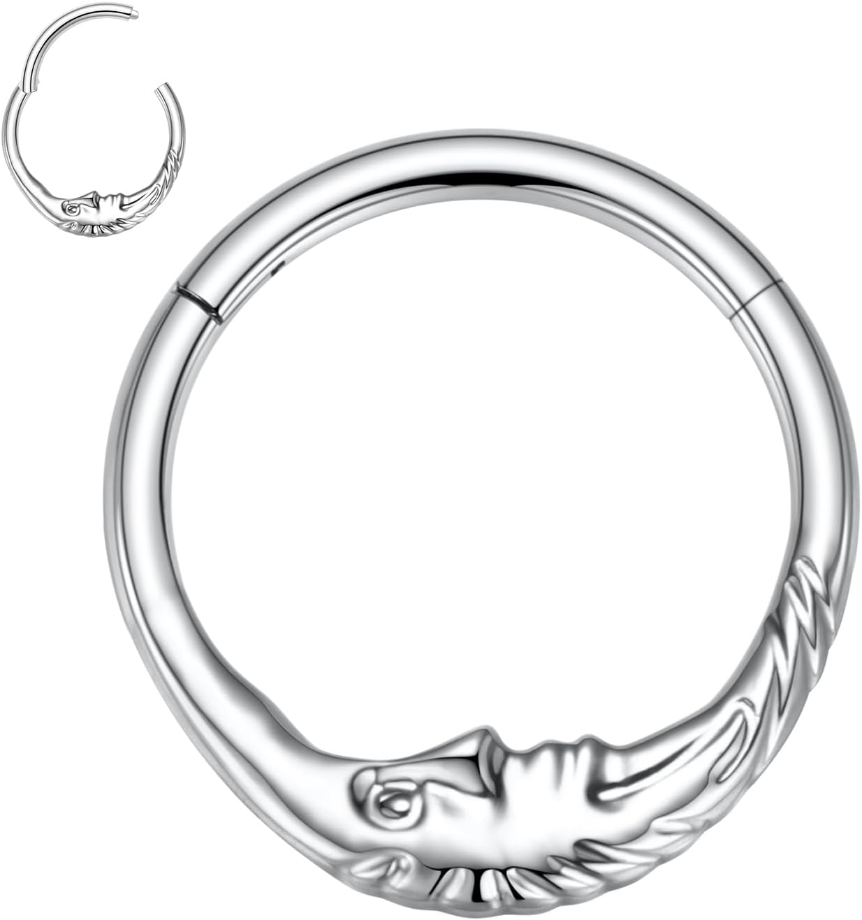 FUNLMO 16G Crescent Moon Face Septum Ring Nose Ring Daith Piercing Jewelry 316L Surgical Steel Septum Jewelry Unique Helix Tragus Piercing Jewelry Cartilage Earring