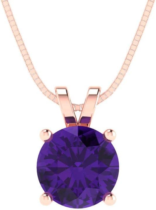 Clara Pucci 14K Rose Gold Plated Solitaire 16" Box-Chain Necklace - Sterling Silver 1ct Round Cut Amethyst Pendant