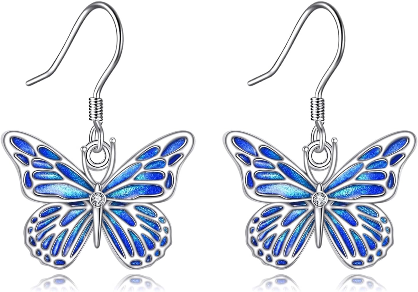 Blue Buterfly Earrings Sterling Silver Blue Opal Butterfly Drop Dangle Earrings for Women Dainty Jewelry Gift for Her Birthday Christmas