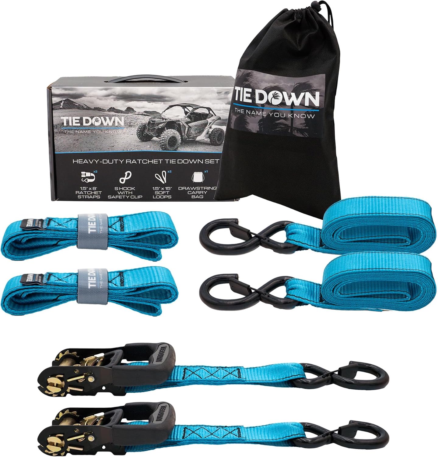 - [VERSATILE CARGO SECURING] These Tie Down Ratchet Straps are your go-to solution for securing a wide array of bulky items, from motorcycles and ATVs to kayaks, furniture, and more.