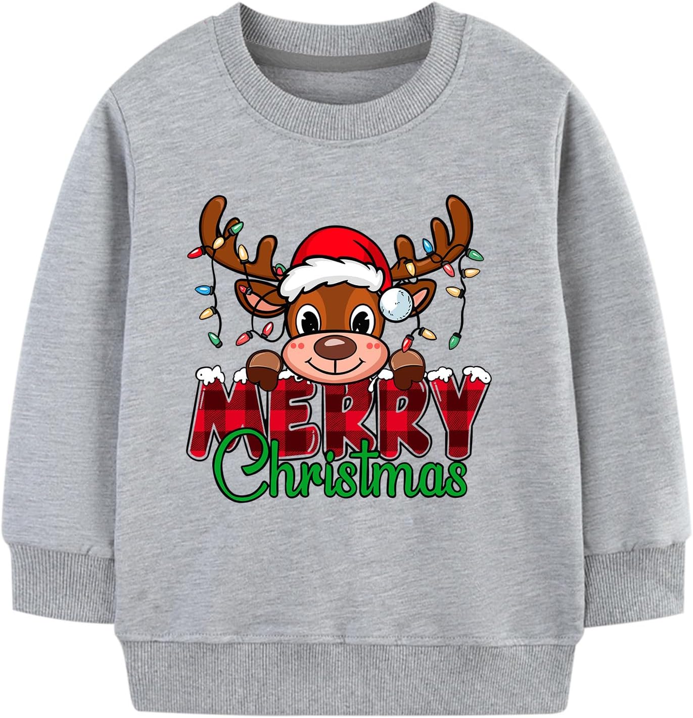 Toddler Boys Girls Christmas Sweatshirts Kid Xmas Ugly Reindeer Elk Santa Dino Long Sleeve Tops Shirt Clothes 2-7 Years