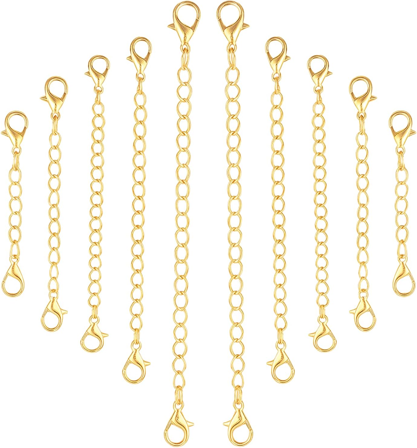 - 【Necklace Extenders】You will receive 10pcs gold necklace extender in different sizes:2",3",4",5",6",2pcs each of size.Multiple sizes to meet your different needs,perfect for necklaces,bracelets,anklets and jewelry making.