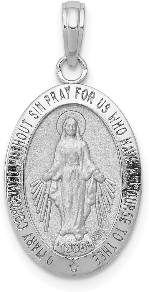 Oval Miraculous Medal Our Lady of Graces with Words Pendant in Real 14k White Gold