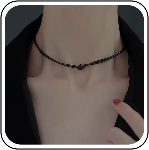 Bohemian Leather Rope Choker Necklace Black Leather Cord Collar Necklace Short Black Wax Rope Chain Necklace Minimalist Leather Necklace Jewelry for Women Gifts