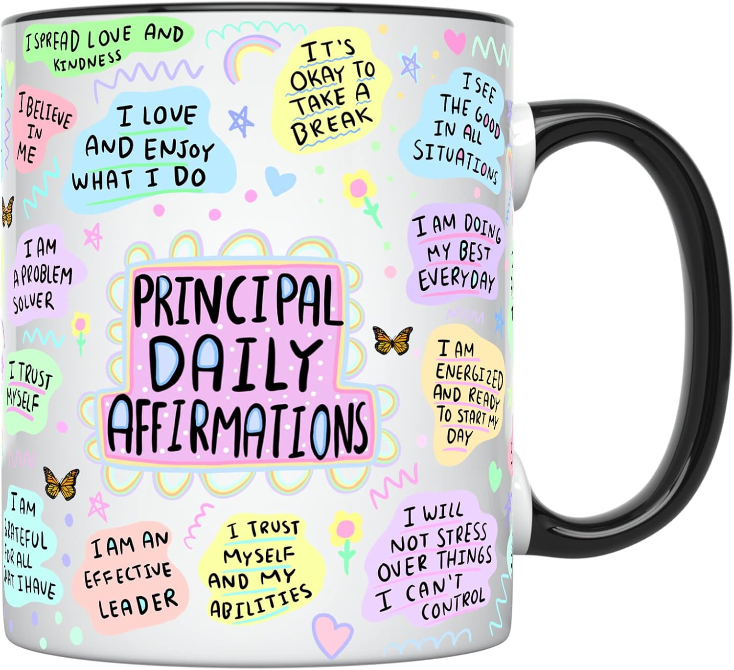 - ☕ [Your Daily Affirmations Coffee Mug] - Sip your way to happiness and enjoy your daily dose of coffee with our cute coffee mugs with a witty artwork on it to boost your mood, confidence, & self-belief. This design will put a smile on your face every time you drink your coffee or tea. Our school principal cups are built to last, made of ceramics, durable and microwavable.