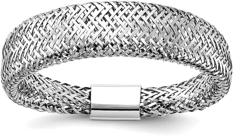 JewelryWeb 5.25mm 14k With Rhodium Mesh Tapered Stretch Ring Ring for Women