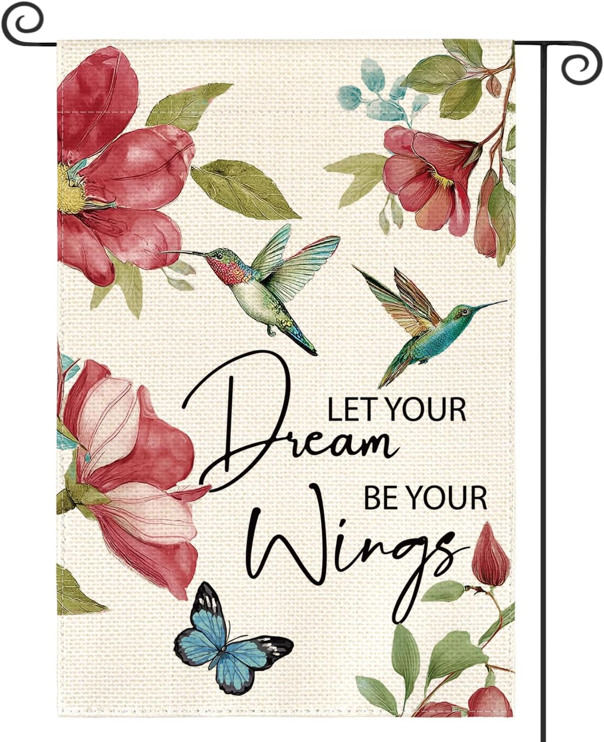 AVOIN colorlife Hummingbird Spring Floral Garden Flag 12x18 Inch Double Sided Outside, Seasonal Welcome Yard Outdoor Flag