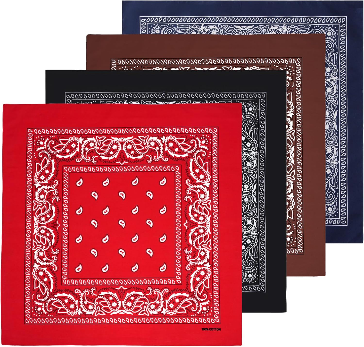 Bycc Bynn Large 27" x 27" 100% Cotton Bandanas - Set of 4