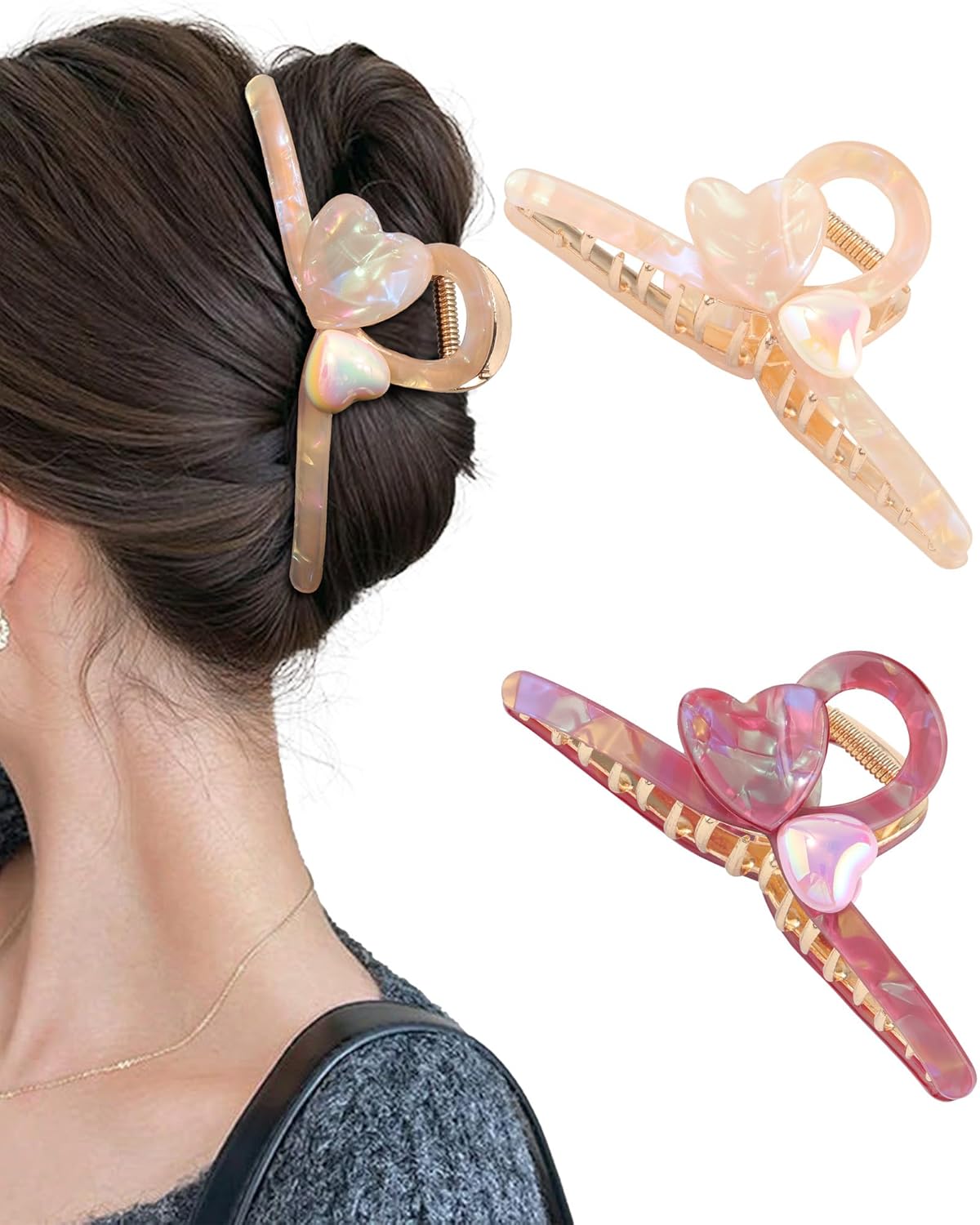 2 PCS Large Metal Hair Claw Clips for Women Big Acrylic Hair Clips No Slip Heart Hair Clips for Thin Thick Hair(Yellow + Purple)
