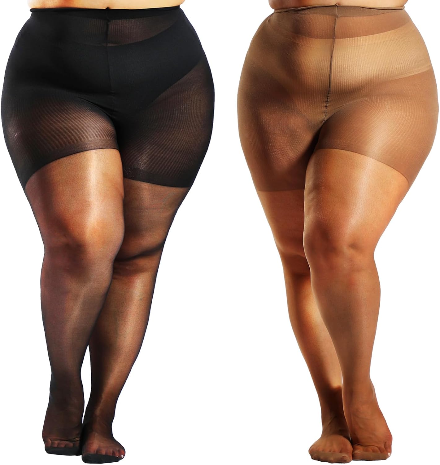 HONENNA 2 Pairs Plus Size Sheer Tights for Women, 17 Colors Ultra Thin Pantyhose Reinforced Toes High Waist Stockings 1XL-6XL