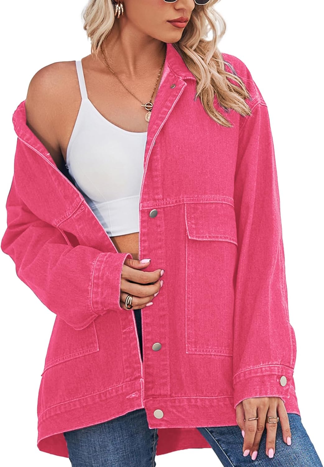 PAODIKUAI Women's Oversized Denim Jacket Casual Long Sleeve Vintage Jean Jacket Top Coat with Pockets