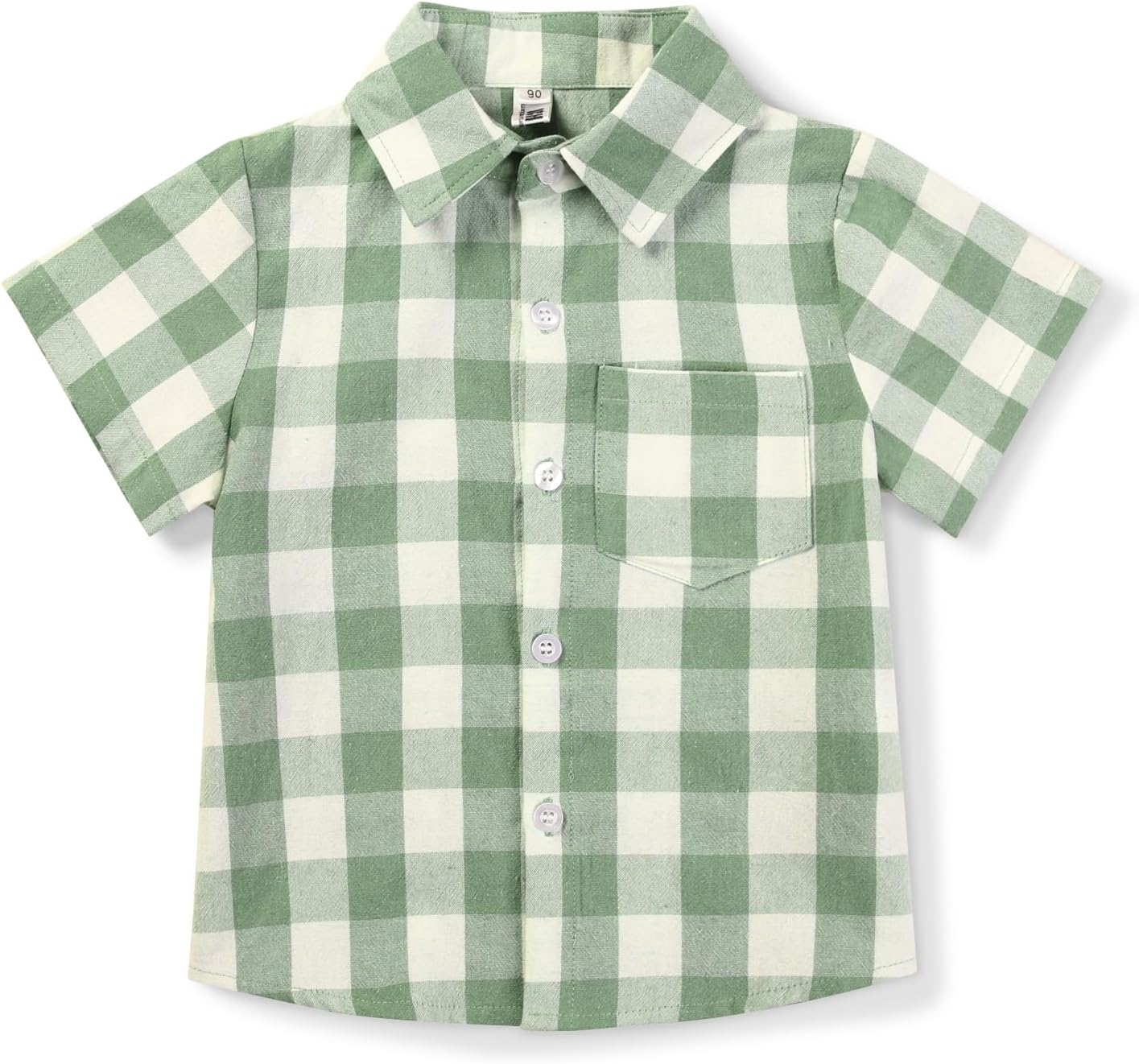 OCHENTA Boys Plaid Shirt Short Sleeve Button Down Kids Summer Casual Buffalo Check Tops 2 Green Tag 130-5 Years