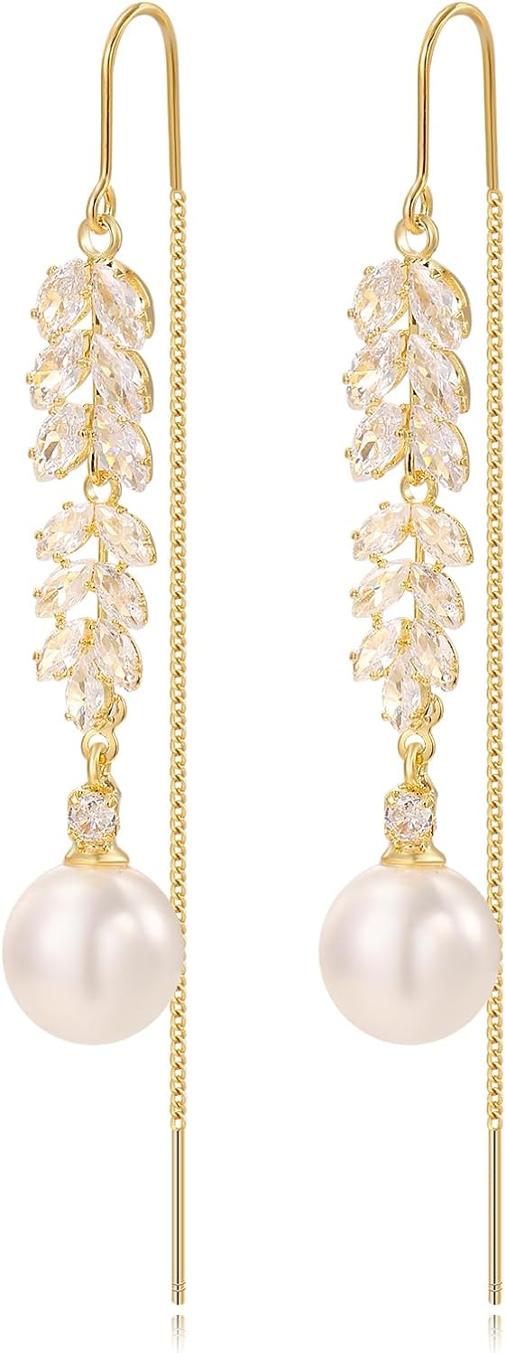 Pearl Chain Threader Dangle Earrings for Women, Long Tassel Pearl Dangle Drop Jewelry Earrings For Women Wedding Party Prom
