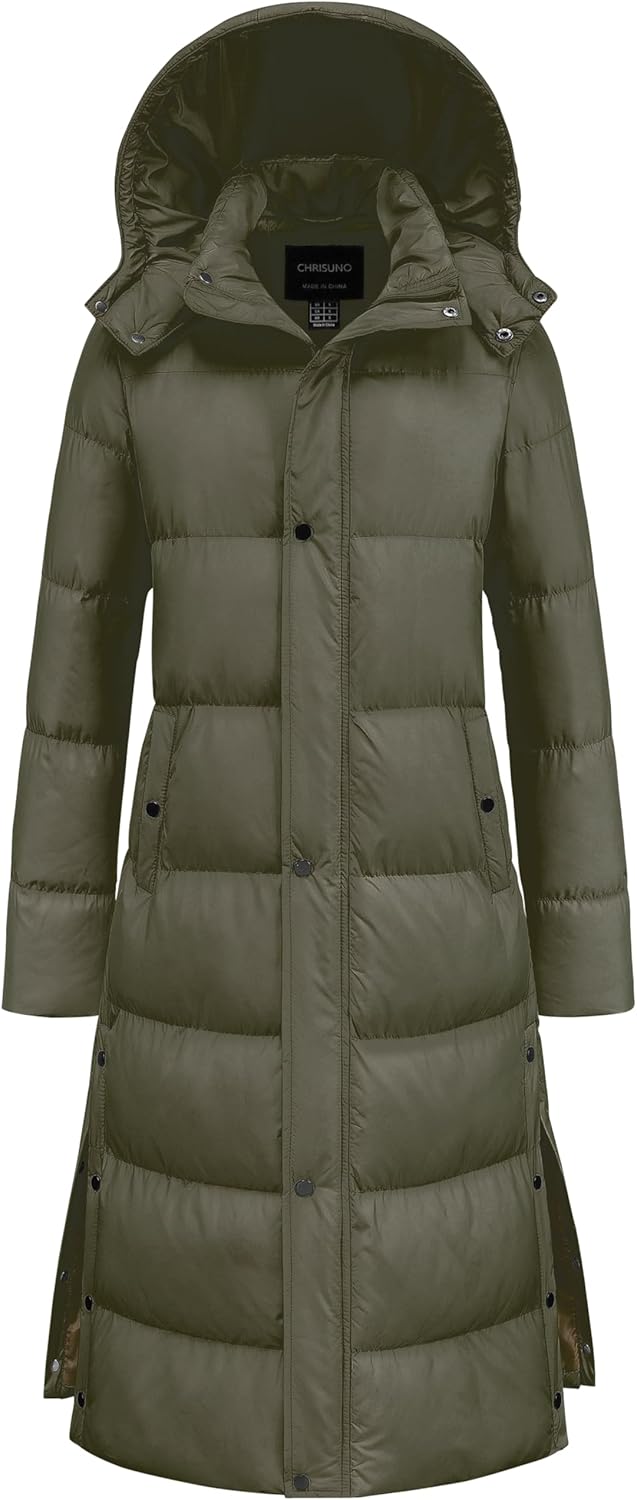 Chrisuno Women's Long Winter Coat Warm Windproof Quilted Puffer Jacket Thicken Puffy Parka With Hood