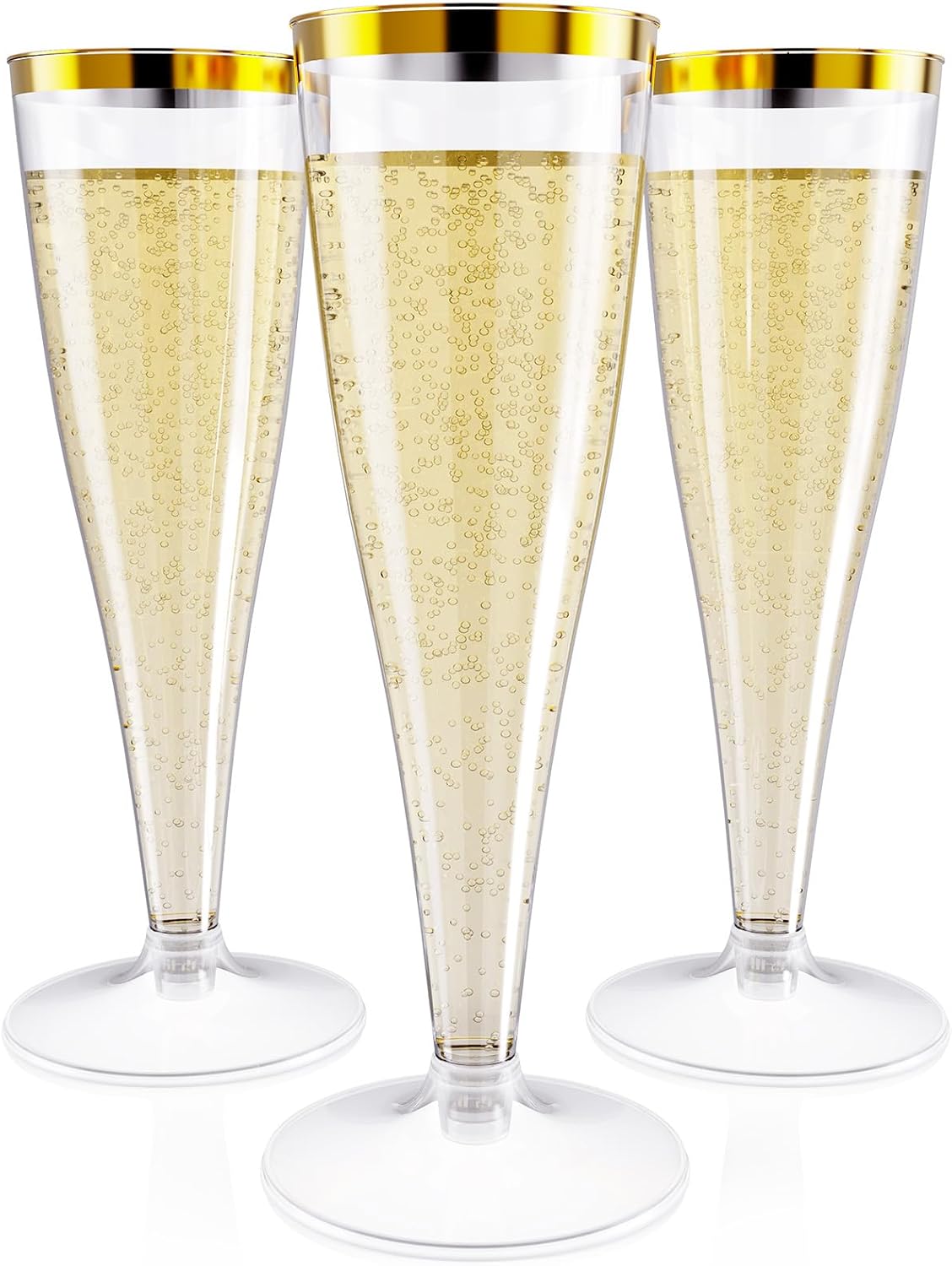 - Elegant Drinkware: In any casual or formal event, use these amazing transparent plastic champagne flutes to sip your beverages in an outstanding style. These gold rimmed plastic champagne glasses are designed to create a stylish splash and bring superior elegance