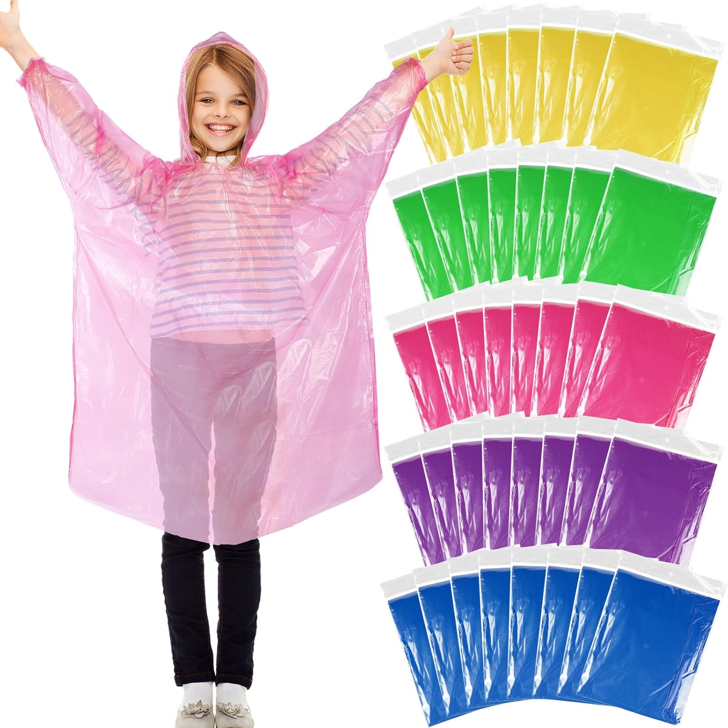 - Kids Ponchos Bulk: you will receive 40 disposable ponchos bulk with hood for kids, enough quantity can satisfy your daily needs and replacement needs, and you can take these kid ponchos bulk as backups for emergency