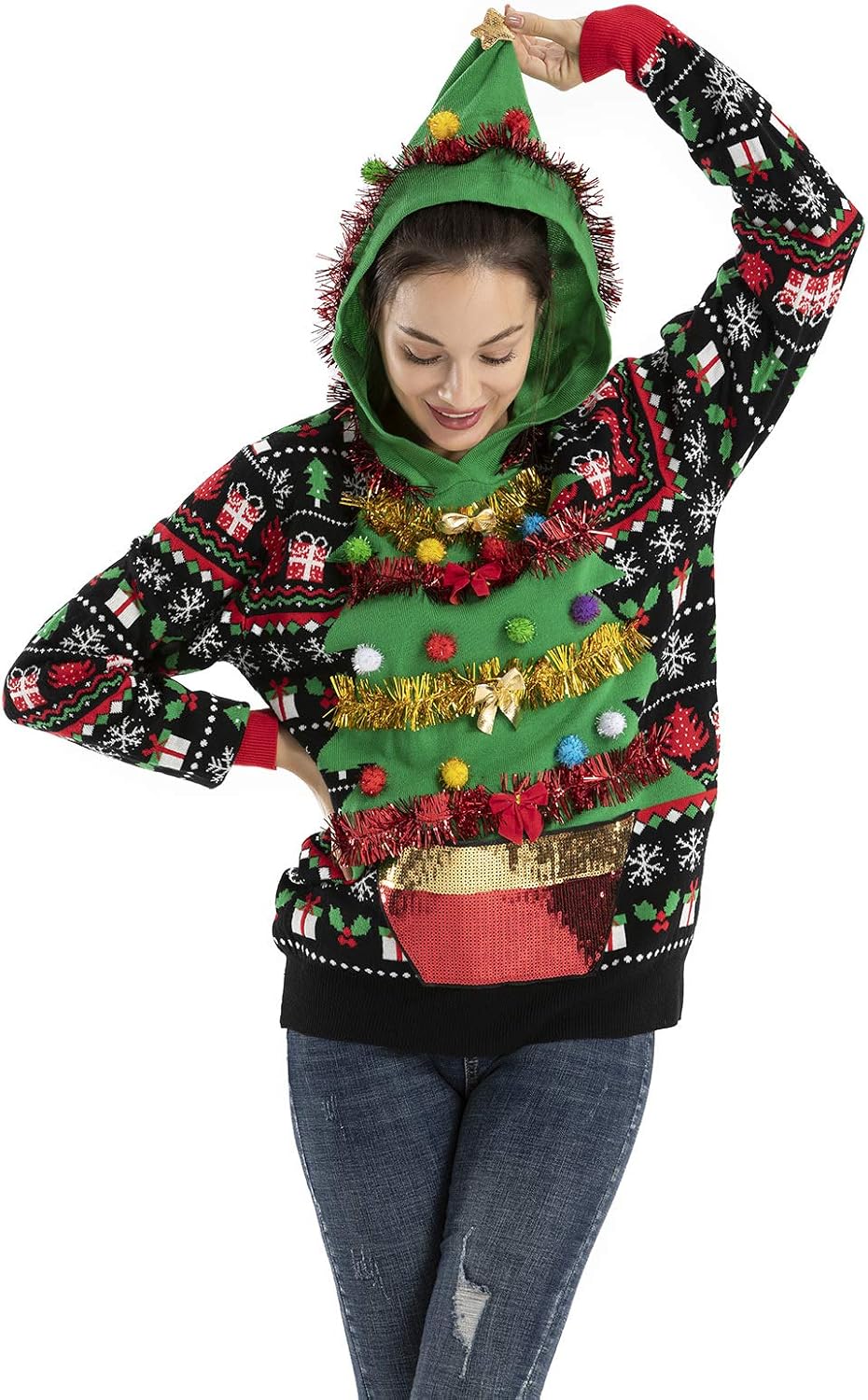 Women Ugly Christmas Sweater Unisex Funny Novelty Knit Pullover Men for Xmas Party