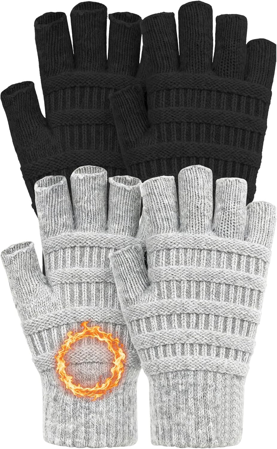 2 Pairs Fingerless Gloves for Women Men, Half Finger Winter Warm Stretch Knitted Gloves for Texting Typing Driving Working