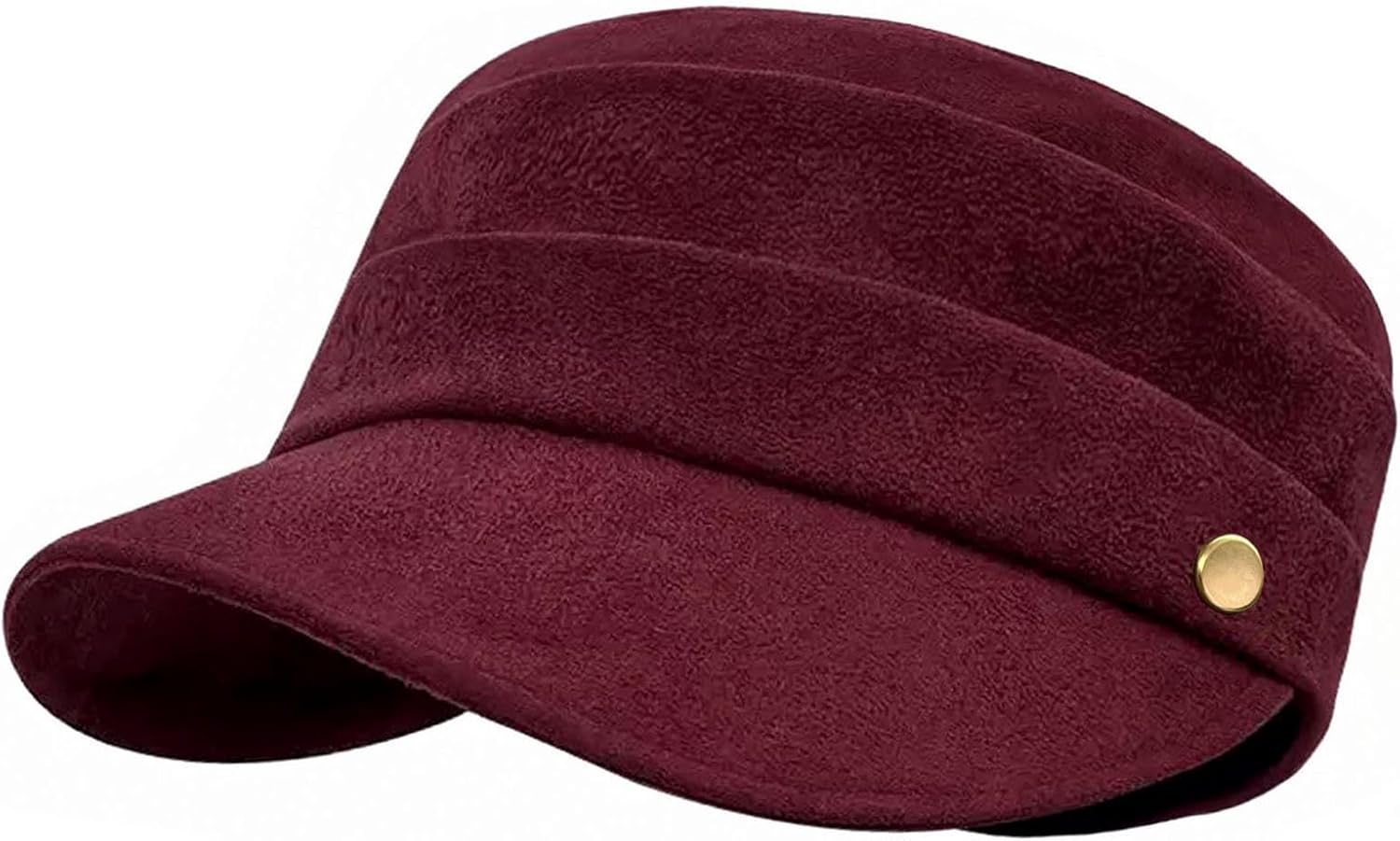 Women's Suede Flat Top Newsboy Cap - Soft Brim & Hook - and - Loop Adjustment - Fall Winter Cabbie Paperboy Hats