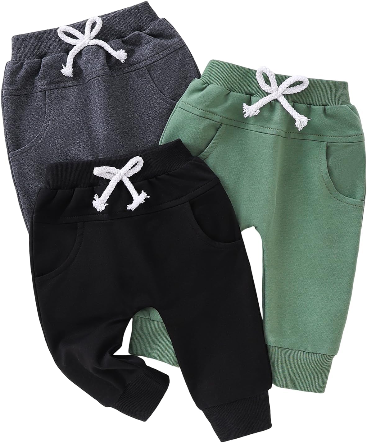 Yvowming Baby and Toddler Boys Cotton Jogger Sweatpants Pants Pull on Cotton Pants with Pockets Multipacks Long Pants