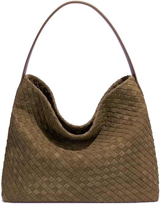 Woven Suede Shoulder Bag for Women Suede Hobo Bag Tote Elegant Handbag Satchel for Work Travel