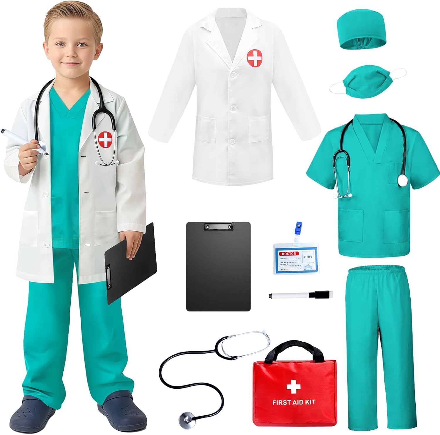 Doctor Costume for Kids with Realistic Stethoscope Career Day and Halloween Kids Scrubs for Girls Costume