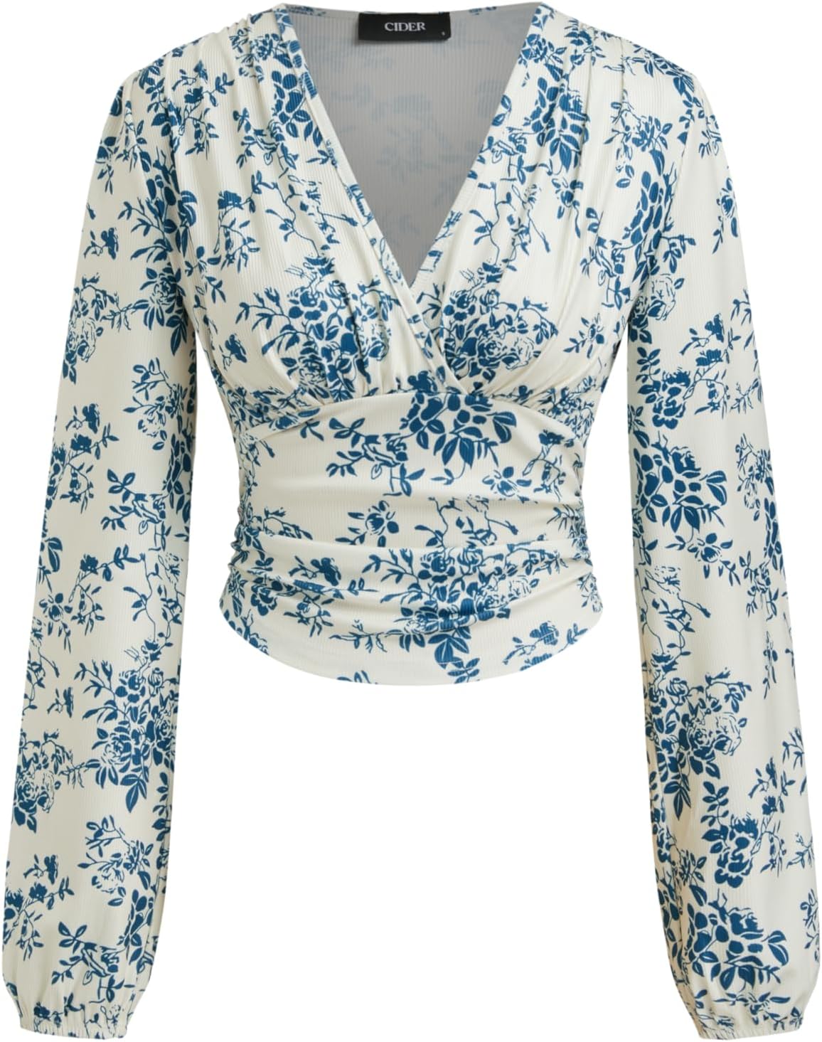 CIDER Floral Print Long Sleeve Crop Top V Neck Blouse Women Fashion