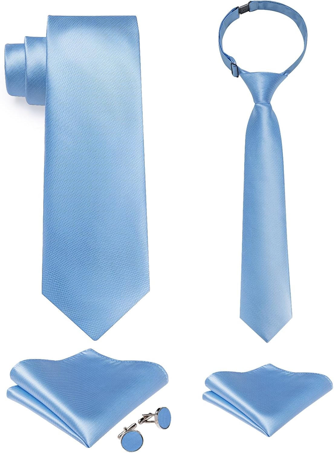 DiBanGu 2PCS Set for Father and Son Tie Silk Mens and Boys Adjustable Necktie & Pocket Square Cufflinks Kids Pre-tied Necktie