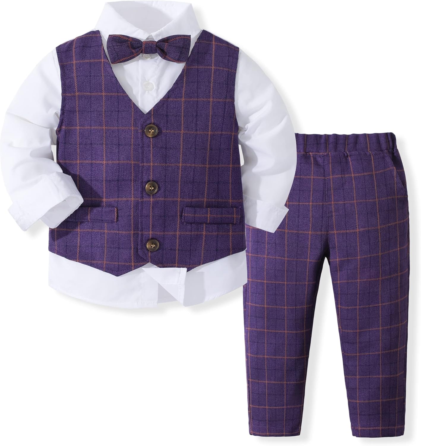 PureMilk Toddler Boy's Fake Vest Gentleman Outfits Suit 3 Piece Clothes Sets 12M-5 Years
