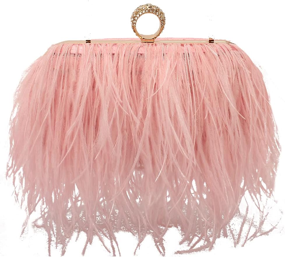 Women Real Natural Ostrich Feather Evening Bags Purses Clutch Vintage Banquet Handbag