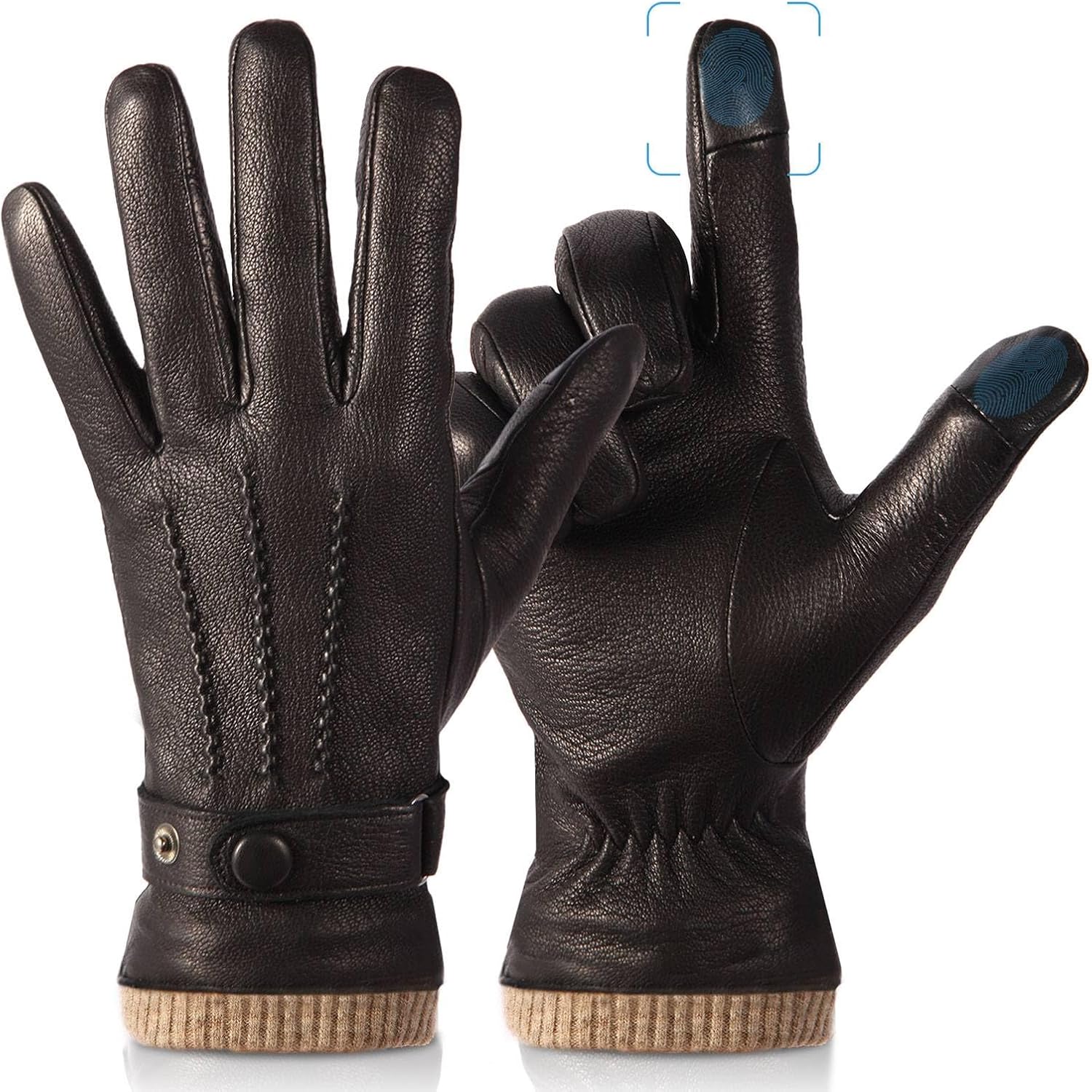 Winter Gloves for Men: Touchscreen Windproof Thermal Sheepskin Leather Gloves Warm Wool Lined for Motorcycle Driving