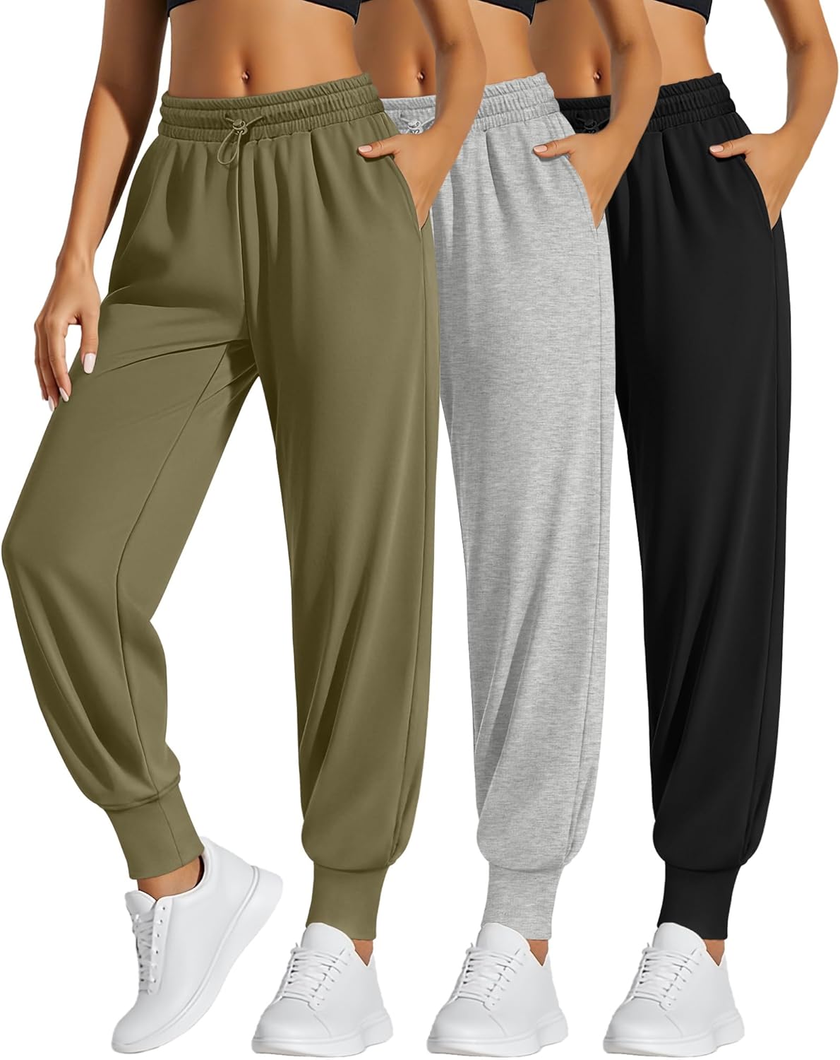 3 Pack Women's Sweatpants Jogger High Waisted Drawstring Athletic Running Yoga Workout Pants with Pockets