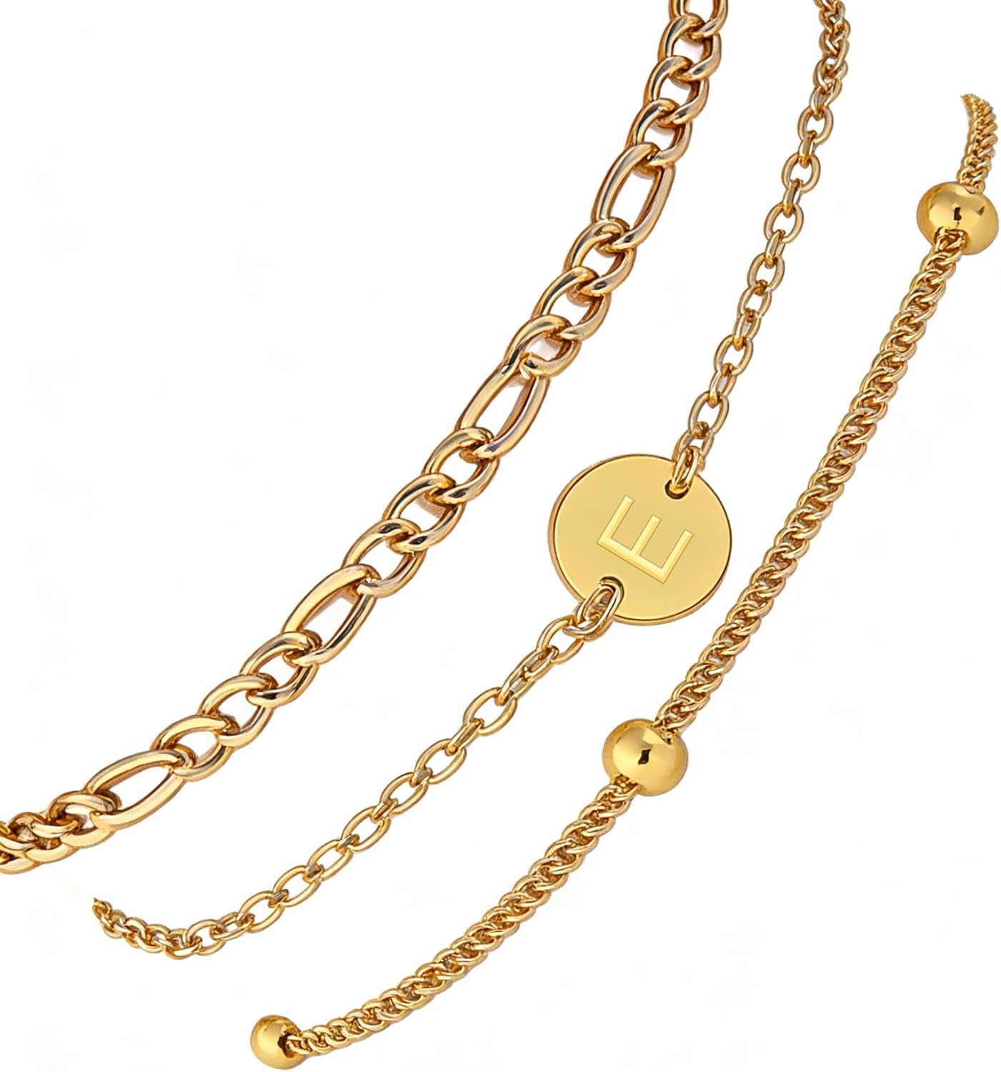 Valentines Day Gifts - 18K Gold Plated Initial Bracelets for Women - Stainless Steel Layered Letter Charm Bracelet A to Z - Gold Jewelry Christmas Birthday Gifts