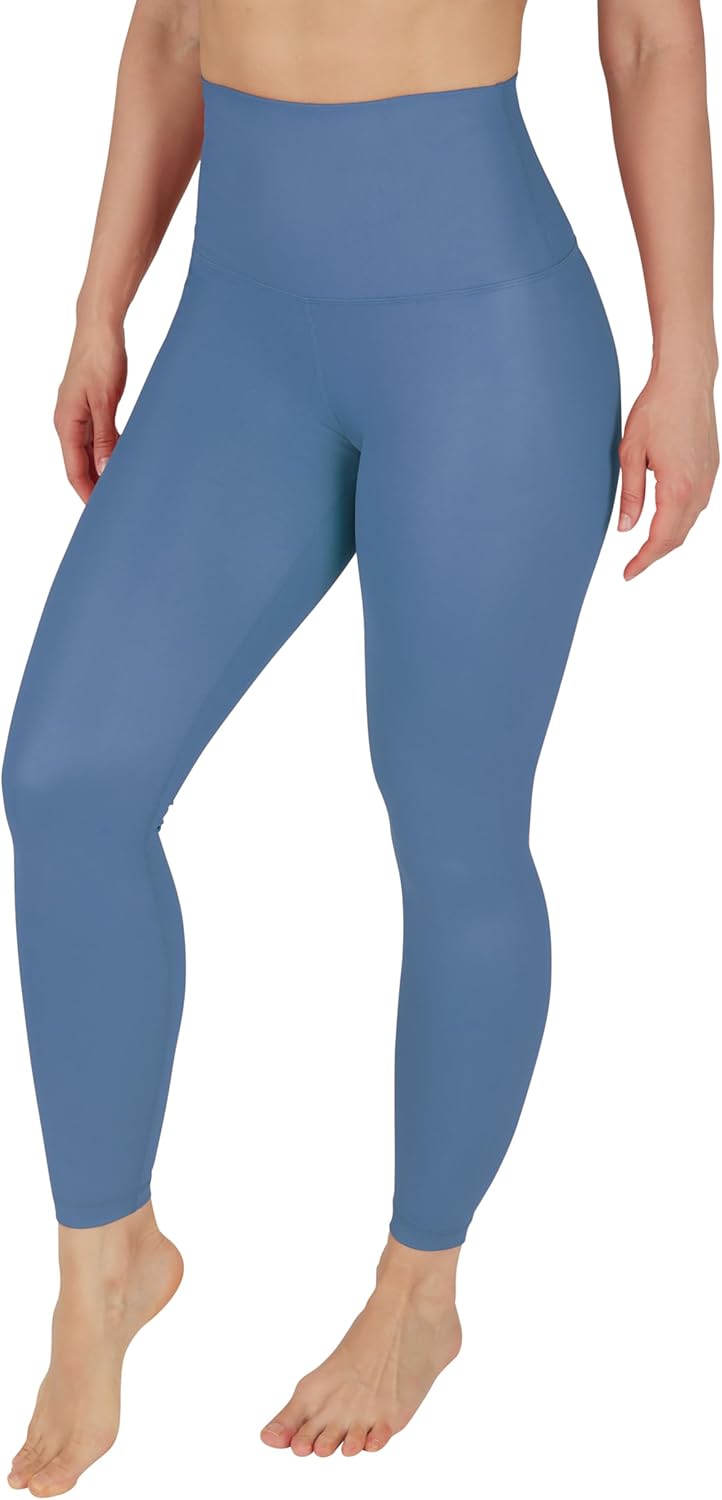 90 Degree By Reflex Womens High Waist High Shine Faux Leather Disco Ankle Leggings