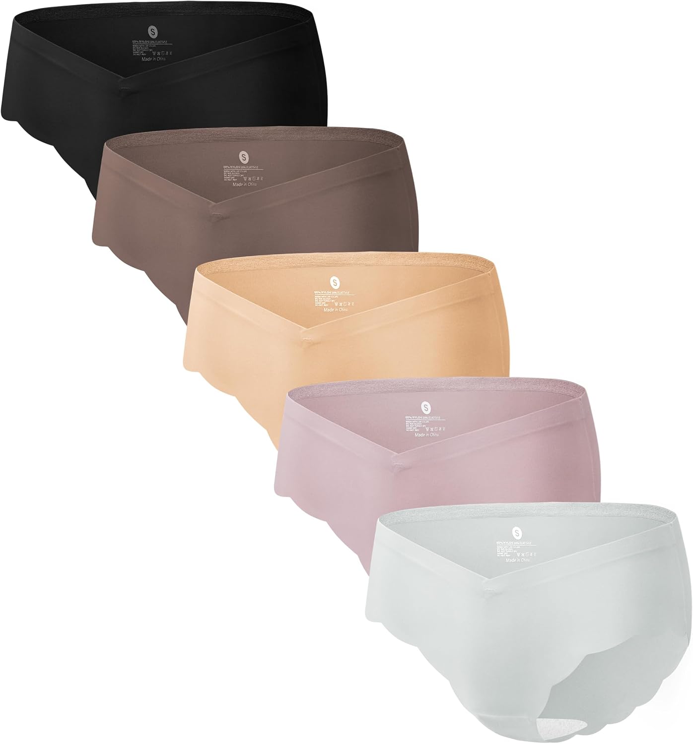 Angelhood 5 Pack Maternity Underwear Seamless, Pregnancy Postpartum Panties Wave Edge No Show Bikini Under Bump