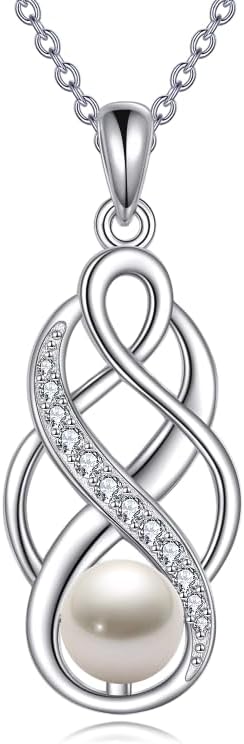 YFN Pearl Celtic Necklace S925 Sterling Silver for Women, Anniversary Irish Celtic Knot Jewelry Present for Women, Birthday Gifts