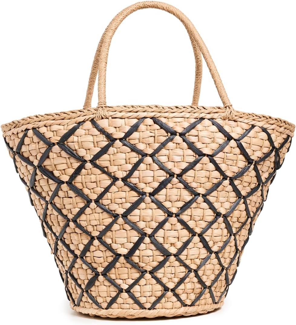 L*Space Palma Nights Bag for Women, Large Straw Travel Bag, Lined Tote With Drawstring, Woven Detail, 100% Corn Husk, Natural/Black